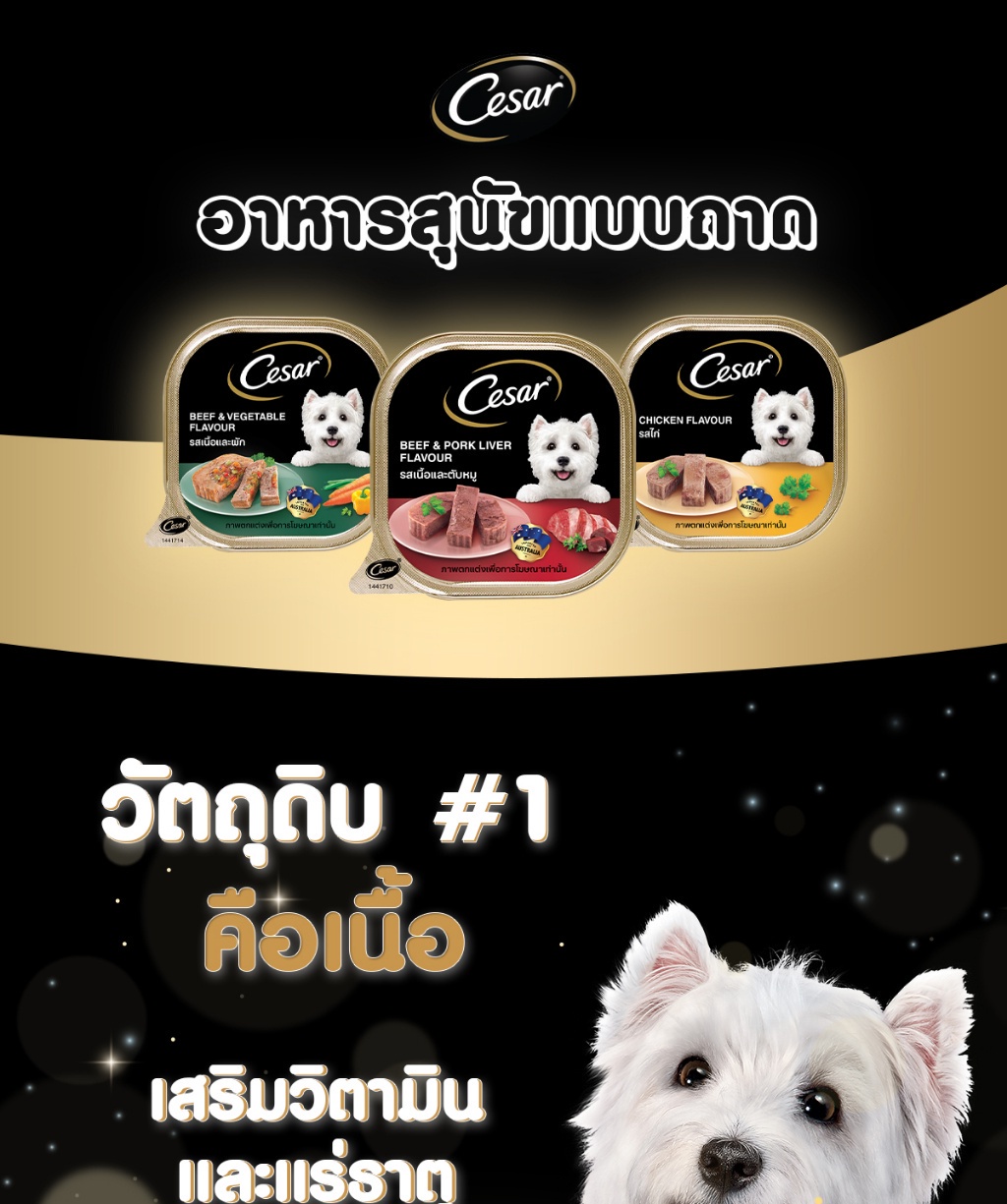 ● อาหารเปียกสุนัข CESAR รสเนื้อและตับหมู